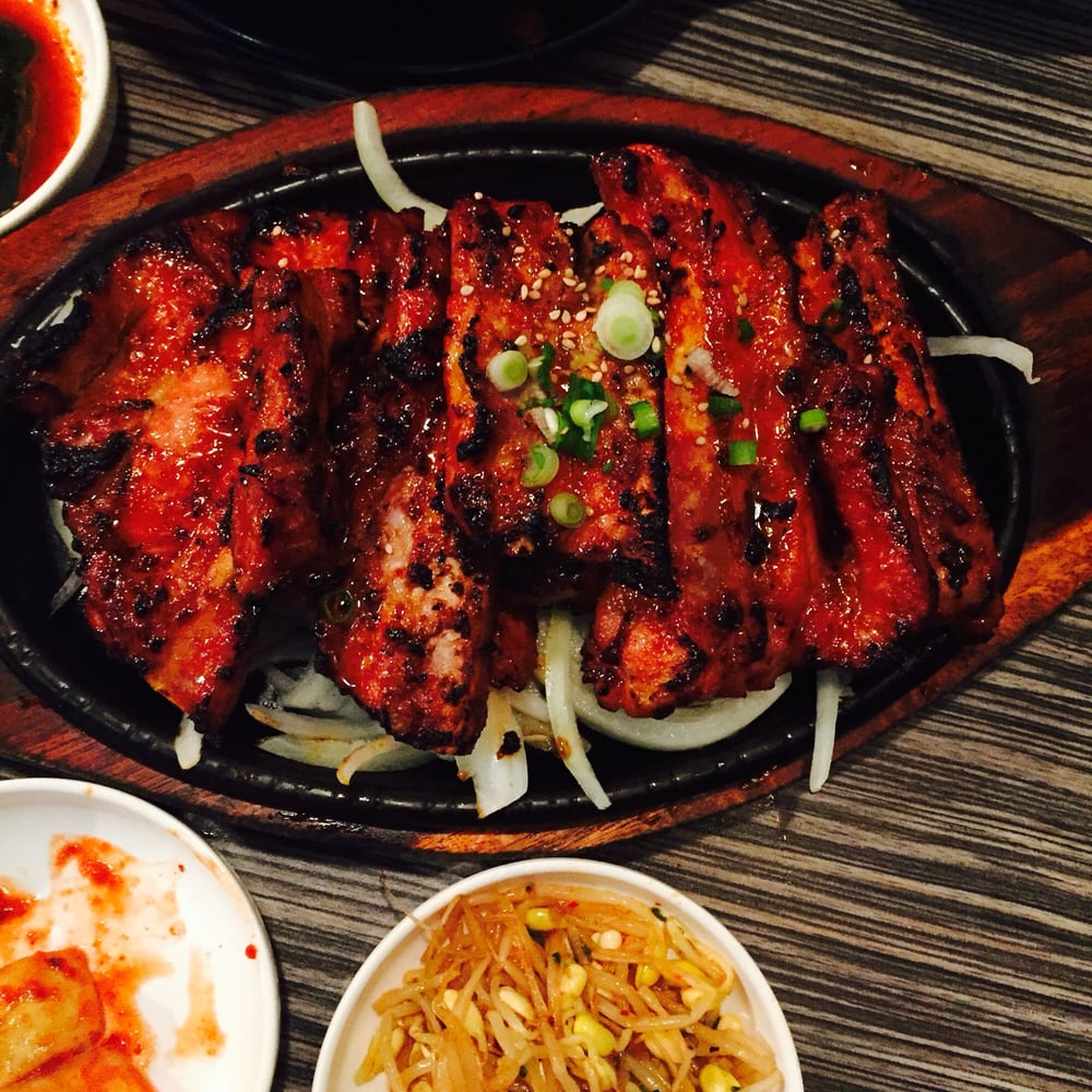 Easily the best gamja tang and pork ribs I've ever had between North America AND Korea. Get there early. Line ups can get long! Parking by valet in the covered garage or metered street parking. Valet is only a few bucks though so I would definitely recommend that.